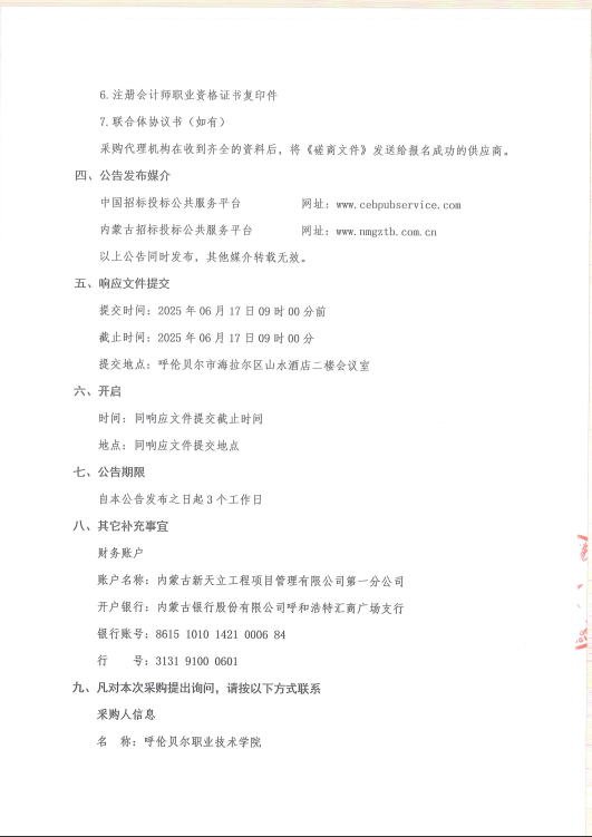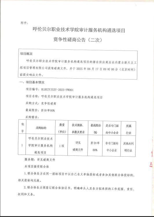 呼伦贝尔职业技术学院审计服务机构遴选项目竞争性磋商公告(二次)